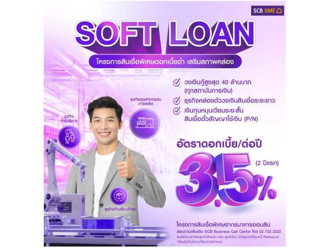 ธนาคารไทยพาณิชย์ เดินหน้าร่วมสนับสนุนภาครัฐช่วยเอสเอ็มอีไทยเข้าถึงสินเชื่อผ่านโครงการสินเชื่อดอกเบี้ยต่ำ (Soft Loan) มุ่งเติมสภาพคล่องให้ผู้ประกอบการเพิ่มขีดความสามารถในการแข่งขัน ฝ่าทุกความท้าทายทางเศรษฐกิจ โดยให้วงเงินสินเชื่อสูงสุด 40 ล้านบาท ดอกเบี้ยต่ำไม่เกิน 3.50% ต่อปี ตั้งเป้าปล่อยสินเชื่อ ผ่านโครงการฯ ไม่ต่ำกว่า 10,000 ล้านบาท