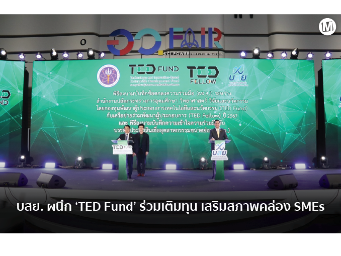 ความร่วมมือในครั้งนี้ นับเป็นก้าวสำคัญในการเสริมสร้างศักยภาพให้กับผู้ประกอบการ SMEs โดย บสย. และกองทุน TED Fund จะทำหน้าที่เป็น Funding Gateway เพื่อเติมเงินทุน และเสริมสภาพคล่องให้กับผู้ประกอบการกลุ่มเทคโนโลยีและนวัตกรรม
