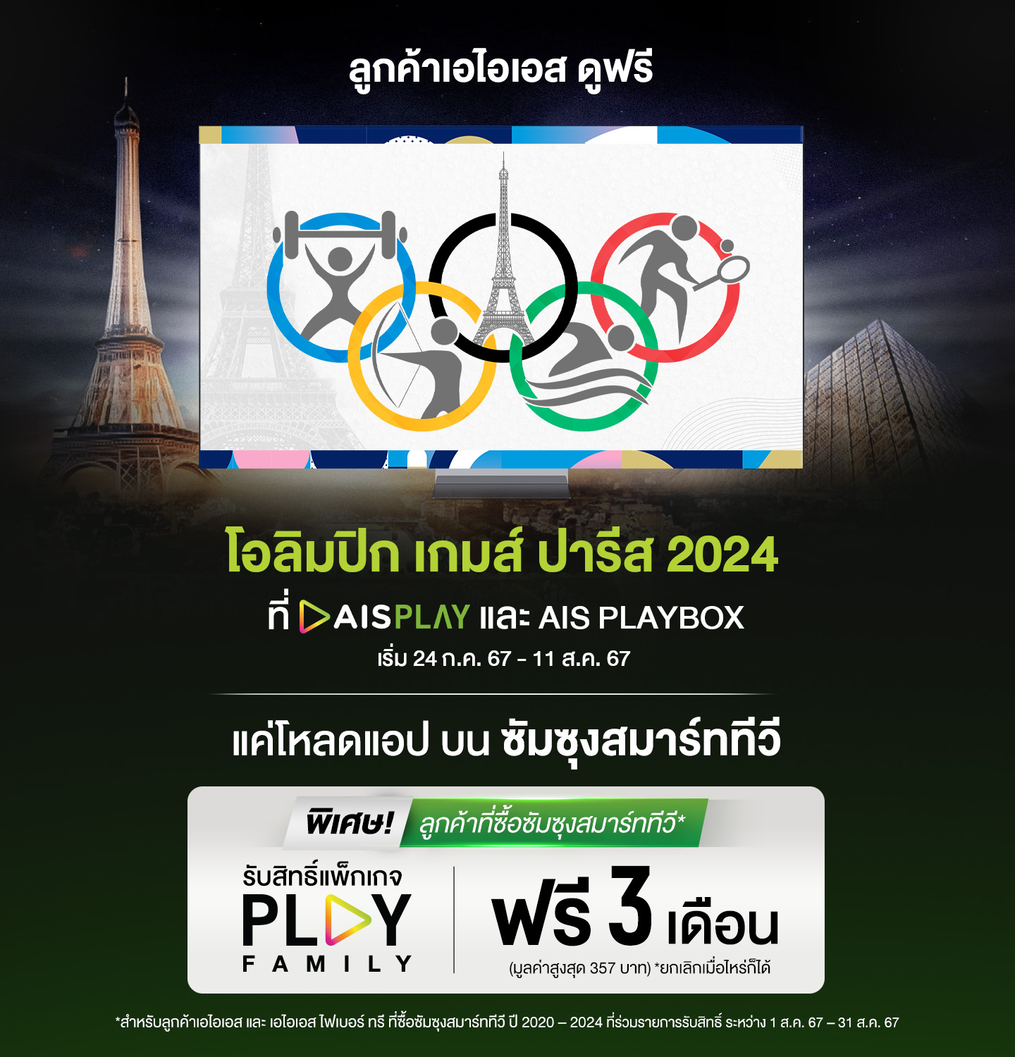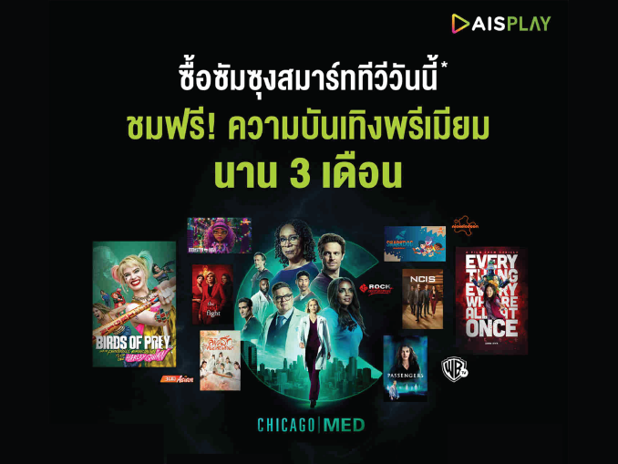 ซัมซุง ผู้นำเทคโนโลยีและนวัตกรรมระดับโลก ชวนเปิดประสบการณ์ความบันเทิงระดับพรีเมียมจาก AIS PLAY ไปกับซัมซุงสมาร์ททีวี ที่ผสานความบันเทิงทุกระดับเข้ากับนวัตกรรมภาพและเสียงชั้นเยี่ยม มาพร้อมฟีเจอร์อัจฉริยะ ที่มอบความสมจริงทุกรายละเอียด และความคมชัดเหนือจินตนาการทำให้ทุกฉากมีชีวิตชีวาราวกับอยู่ในเหตุการณ์จริง พร้อมรับสิทธิ์ชมฟรี AIS PLAY FAMILY นานถึง 3 เดือน เมื่อซื้อซัมซุงสมาร์ททีวีตั้งแต่วันนี้ ถึง 31 สิงหาคมนี้*