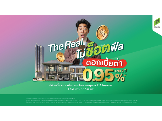 พฤกษา แรงไม่หยุด รวบ 112 โครงการ ทั้งบ้าน ทาวน์โฮม คอนโดมิเนียม จัดแคมเปญสะท้านวงการ “The Real ไม่ช็อตฟีล” จัดหนักจัดเต็มกับโปรโมชันดอกเบี้ยต่ำ 0.95% ต่อปี คงที่นานถึง 2 ปี ผ่อนต่ำเพียงล้านละ 900 บาท นาน 2 ปี พร้อมส่วนลดหรือของแถมสูงสุดถึง 2 ล้านบาท ฟรีค่าโอน ฟรีเฟอร์นิเจอร์ ฟรีเครื่องใช้ไฟฟ้า ตั้งแต่วันนี้ ถึง 30 กันยายน 2567
