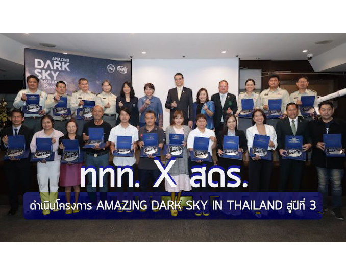 การท่องเที่ยวแห่งประเทศไทย (ททท.) โดย นางสาวสมฤดี จิตรจง รองผู้ว่าการด้านตลาดในประเทศ ททท. และ สถาบันวิจัยดาราศาสตร์แห่งชาติ (องค์การมหาชน) (สดร.) โดย ดร.ศรัณย์ โปษยะจินดา ผู้อำนวยการ สดร. เปิดตัวโครงการ AMAZING DARK SKY IN THAILAND #Season 3 ผลักดันการท่องเที่ยวเชิงดาราศาสตร์ต่อเนื่อง