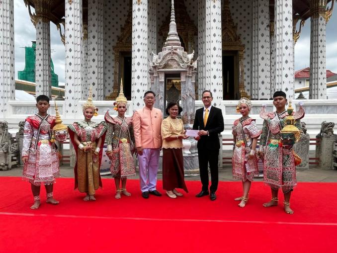 โดยมี ดร.นิภา โสภาสัมฤทธิ์ อธิการบดีสถาบันบัณฑิตพัฒนศิลป์ เป็นผู้รับมอบในพิธีบำเพ็ญกุศลถวายเป็นพระราชกุศล ณ พระอุโบสถ วัดอรุณราชวราราม