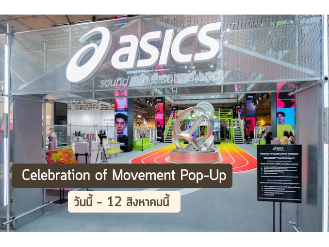 ASICS (เอสิคซ์) เผยโฉม Celebration of Movement Pop-Up อีเวนต์สุดยิ่งใหญ่ ใจกลางกรุงเทพฯ ตั้งแต่วันนี้ - 12 สิงหาคมนี้ โดยภายในงานทุกคนจะได้เปิดประสบการณ์ใหม่ ๆ สัมผัสบรรยากาศแห่งกีฬาและการเฉลิมฉลองผ่านคอลเลกชั่นล่าสุดอย่าง Celebration of Sport รวมไปถึงการทดสอบประสิทธิภาพของเทคโนโลยีและรองเท้าวิ่งรุ่นใหม่ล่าสุด นอกจากนี้ยังมีการจัดแสดงเรื่องราวการส่งต่อแรงบันดาลใจของผู้คนที่หลากหลายจากทั่วทั้งภูมิภาคเอเชียตะวันออกเฉียงใต้ พร้อมกิจกรรมเวิร์คช็อปสุดพิเศษตลอดช่วงวันหยุดสุดสัปดาห์