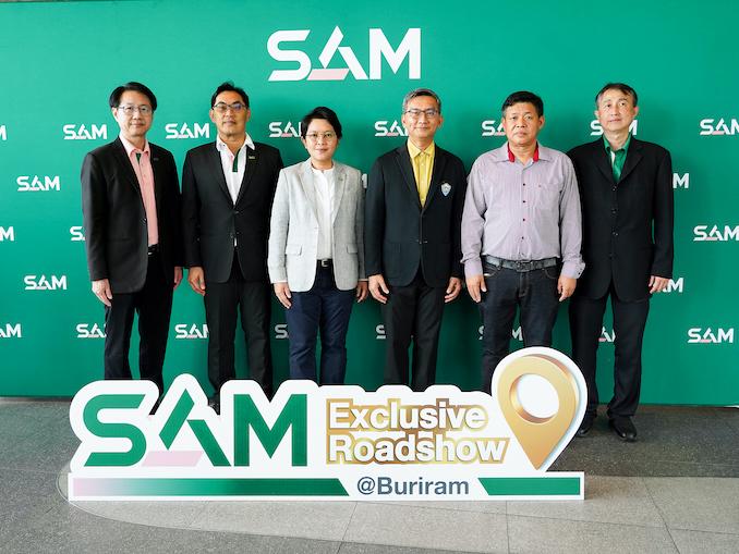 นางสาวนารถนารี รัฐปัตย์ กรรมการผู้จัดการ บริษัท บริหารสินทรัพย์สุขุมวิท จำกัด (บสส.) SAM พร้อมคณะผู้บริหารระดับสูง ให้การต้อนรับ คุณณัชอิสร์ ศรสุขพรชัย ประธานหอการค้ากลุ่มนครชัยบุรินทร์ คุณณัฐวุฒิ วนพงศ์ทิพากร ประธานสภาอุตสาหกรรมจังหวัดบุรีรัมย์ นักลงทุน และผู้ประกอบการธุรกิจอสังหาริมทรัพย์ ที่เข้าร่วมงาน “SAM Exclusive Roadshow @ Buriram”