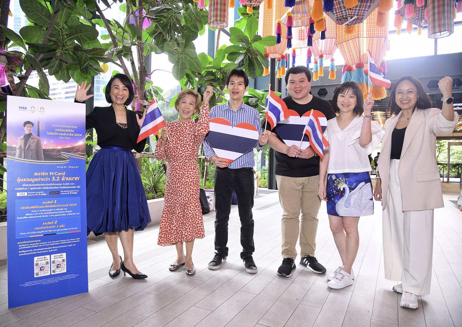 นิรินทร์ สมบูรณสิน ผู้จัดการทั่วไป Loyalty M Cardบริษัท เดอะมอลล์ กรุ๊ป จำกัด และ อังศุมาลิน ฟอร์ดแฮม หัวหน้าฝ่ายพัฒนาธุรกิจ บริษัท วีซ่า อินเตอร์เนชั่นแนล ประเทศไทย ร่วมแสดงความยินดีแก่ผู้โชคดี ที่ได้รับแพ็คเกจทัวร์ปารีสพร้อมชมการแข่งขันกีฬาโอลิมปิก และรับชมพิธีปิดปารีสโอลิมปิก 2024 ที่ประเทศฝรั่งเศส 5 วัน 4 คืน จากแคมเปญ “ประสบการณ์สุดยิ่งใหญ่ ทริปชมพิธีปิดปารีสโอลิมปิก 2024” จัดโดย เดอะมอลล์ กรุ๊ป ร่วมกับพันธมิตรระดับเวิลด์คลาส วีซ่า ผู้นำการให้บริการการชำระเงินดิจิทัลระดับโลก และผู้สนับสนุนอย่างเป็นทางการมหกรรมกีฬาโอลิมปิก 2024 ที่กรุงปารีส ประเทศฝรั่งเศส
