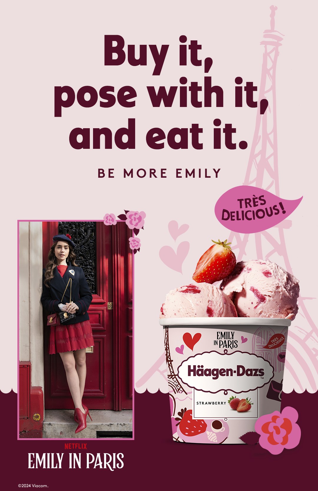 ฮาเก้น-ดาสและเอมิลีในปารีส ฉลองความร่วมมือสุดพิเศษนี้ด้วยการเปิดตัวคอลเล็กชันไอศกรีมลายใหม่ ที่มาพร้อมกับรสชาติยอดนิยมที่ครองใจคนทั่วโลกอย่าง "รสสตรอว์เบอร์รี" เอาใจแฟน ๆ ที่ชื่นชอบการลิ้มลองประสบการณ์ใหม่ ๆ ตอบโจทย์ความอร่อยระดับพรีเมี่ยม