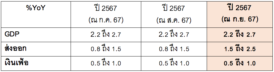 กรอบประมาณการเศรษฐกิจปี 2567 ของ กกร.