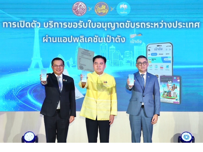 โดยกรมการขนส่งทางบกและธนาคารกรุงไทย ได้ร่วมกันพัฒนากระบวนการขอรับใบอนุญาตขับรถระหว่างประเทศผ่านแอปพลิเคชัน “เป๋าตัง” ตามโครงการพัฒนาการให้บริการขอรับใบอนุญาตขับรถระหว่างประเทศผ่านระบบอิเล็กทรอนิกส์ ซึ่งจะช่วยอำนวยความสะดวก และลดค่าใช้จ่ายในการเดินทางของประชาชนทั้งนี้ การพัฒนากระบวนการฯดังกล่าว จะช่วยขับเคลื่อนนโยบายดิจิทัลให้มีบทบาทสำคัญในการเพิ่มประสิทธิภาพการให้บริการประชาชน ช่วยอำนวยความสะดวกแก่ผู้ใช้บริการด้านการขนส่งอย่างต่อเนื่อง นอกจากนี้ยังเป็นการมอบของขวัญปีใหม่ 2568 สำหรับพี่น้องประชาชนผู้ใช้บริการอีกด้วย