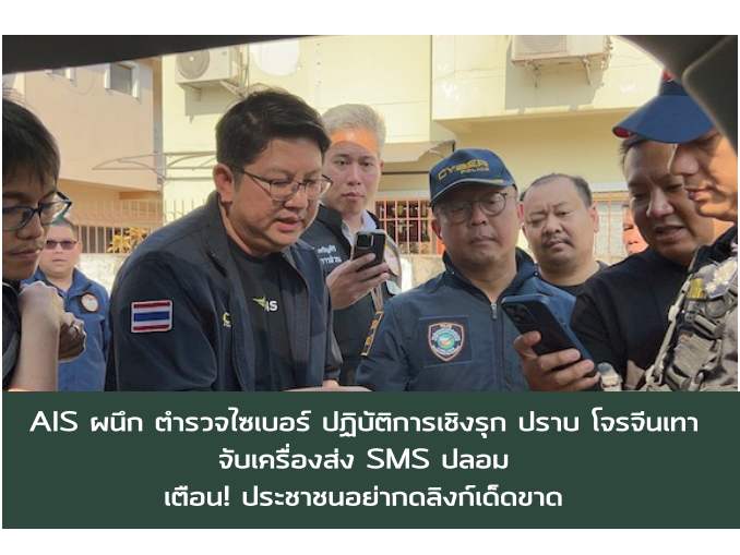 นายวรุณเทพ วัชราภรณ์ หัวหน้าฝ่ายงานธุรกิจสัมพันธ์ AIS กล่าวว่า “ในฐานะผู้ให้บริการระบบสื่อสาร เราให้ความสำคัญกับการดูแลลูกค้าให้ใช้บริการได้อย่างปลอดภัย จึงเดินหน้าทำงานเชิงรุกอย่างต่อเนื่องในทุกมิติ โดยการให้ความร่วมมือกับตำรวจ และหน่วยงานภาครัฐ ในการติดตามมิจฉาชีพ ตรวจสอบเส้นทาง ปิดกั้นการใช้เครือข่ายเป็นช่องทางหลอกลวงประชาชน อย่างเรื่องการส่ง SMS ปลอม ผ่านอุปกรณ์เครื่องจำลองสถานี (False Base Station) เสมือนการปลอมเป็นเครือข่ายเอไอเอส ทำการส่ง SMS ปลอมจาก Sender ชื่อ AIS ทำให้ประชาชนสับสนและหลงเชื่อ ซึ่งอุปกรณ์ดังกล่าว เป็นเครื่องวิทยุโทรคมนาคมแบบพกพาเถื่อน ผิดกฎหมาย เพราะหลังจากการตรวจสอบแล้ว ไม่พบข้อมูลการได้รับอนุญาตจาก กสทช. แต่อย่างใด