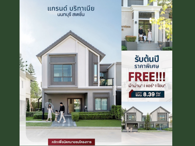 ต้อนรับต้นปี กับโอกาสดีๆ ของคนที่กำลังมองหาบ้านย่านนนทบุรี ทำเลศักยภาพ พบกับโครงการ แกรนด์บริทาเนีย นนทบุรี สเตชั่น จัดโปรโมชั่นเด็ด คัดแปลงสวย ราคาพิเศษ กับบ้านซีรีส์ใหม่รุ่นขายดี รองรับ 4 ห้องนอน 2 ที่จอดรถ เปิดให้จองในราคาพิเศษ 8.39 ล้านบาท*