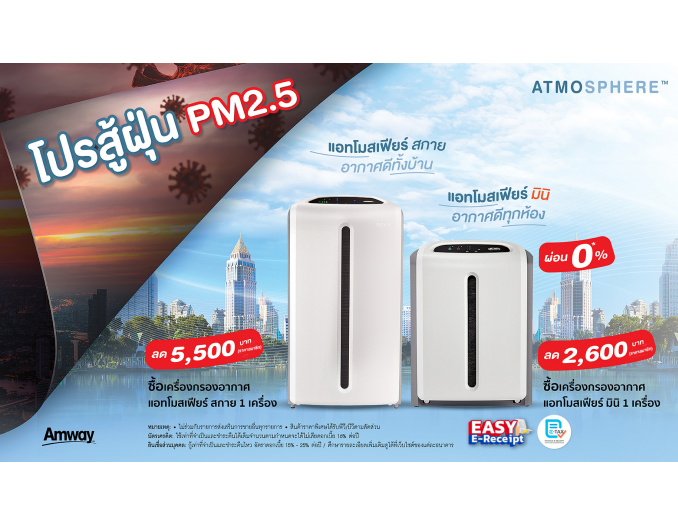 แอมเวย์ ชวนเตรียมพร้อมรับมือสู้ฝุ่นกับ แอทโมสเฟียร์ (Atmosphere) นวัตกรรมเครื่องกรองอากาศ ให้คุณได้เป็นเจ้าของอากาศสะอาดภายในบ้าน ช่วยลดมลพิษและฝุ่น PM2.5 ที่กวนใจ ส่งผลกระทบต่อสุขภาพ ด้วยโปรโมชันสุดพิเศษรับต้นปี เมื่อซื้อ....