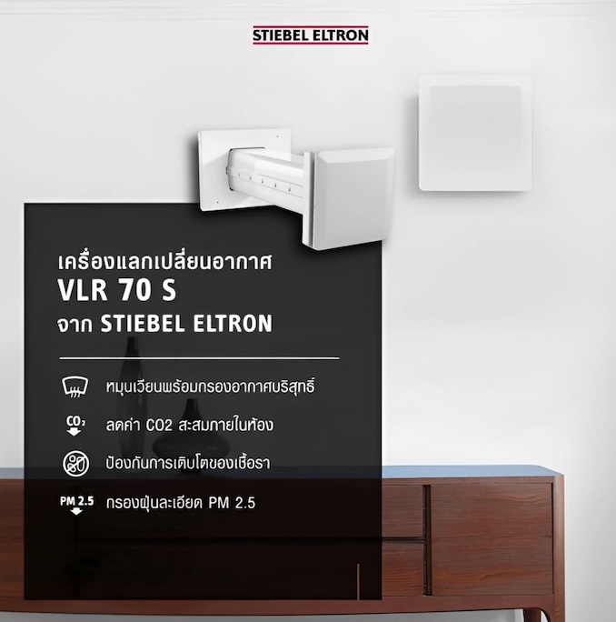 สตีเบล เอลทรอน (Stiebel Eltron) เปิดตัวเครื่องแลกเปลี่ยนอากาศ VLR 70 S ชูประสิทธิภาพการกรองฝุ่น PM 2.5 ได้ถึง 95% เพิ่มการถ่ายเทของออกซิเจนในห้อง สู่อากาศสดชื่นบริสุทธิ์ ตอบโจทย์การดูแลสุขภาพท่ามกลางสถานการณ์ฝุ่นและมลภาวะที่ต้องเผชิญในปัจจุบัน คาดการณ์ภายในปี 2568 ตั้งเป้ายอดขายโต 20%