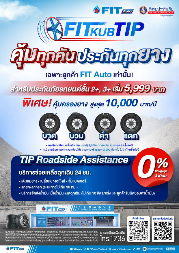 ผู้สนใจสามารถเลือกซื้อผลิตภัณฑ์ประกันภัยในโครงการ “FIT KUB TIP” ได้ง่าย ๆ ผ่านการสแกน QR Code ณ จุดบริการ FIT Auto ทุกสาขาทั่วประเทศ หรือสอบถามรายละเอียดเพิ่มเติมได้ที่ Call Center โทร. 1736 และช่องทาง LINE Official : @tipfitauto