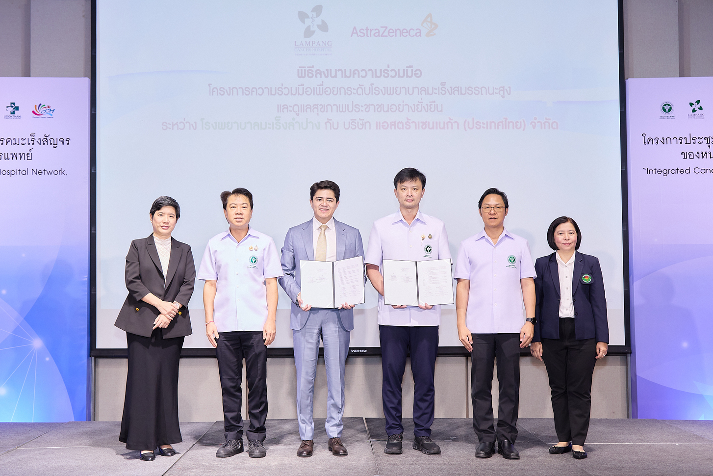 โรงพยาบาลมะเร็งลำปางและบริษัทแอสตร้าเซนเนก้า (ประเทศไทย) จำกัด ประกาศความร่วมมือครั้งสำคัญ เพื่อเสริมสร้างศักยภาพในการรักษาและดูแลผู้ป่วยโรคมะเร็งด้วยเทคโนโลยีและนวัตกรรมทางการแพทย์ เพิ่มประสิทธิภาพในการตรวจคัดกรองและวินิจฉัยโรคตั้งแต่ระยะเริ่มต้น เพื่อเพิ่มโอกาสรอดชีวิตของผู้ป่วยในระยะยาว พร้อมเปิดตัวโครงการนำร่องในการดูแลผู้ป่วยมะเร็งปอด และผลักดันการทำวิจัยระดับนานาชาติในกลุ่มโรคมะเร็ง และการจัดตั้งเครือข่ายการส่งต่อการรักษาโรคมะเร็งอย่างมีประสิทธิภาพ