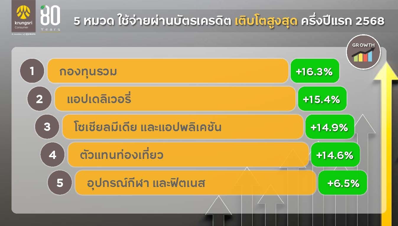 ข้อมูลจากพฤติกรรมการใช้จ่ายผ่านบัตรเครดิตในกลุ่มกรุงศรีคอนซูมเมอร์ ผู้ให้บริการด้านบัตรเครดิตและสินเชื่อส่วนบุคคล อันประกอบไปด้วย บัตรเครดิต กรุงศรี, บัตรกรุงศรีเฟิร์สช้อยส์, บัตรเครดิต เซ็นทรัล เดอะวัน และบัตรเครดิตโลตัส ตั้งแต่เดือนมกราคมถึงมิถุนายน 2568 ชี้ให้เห็นว่า