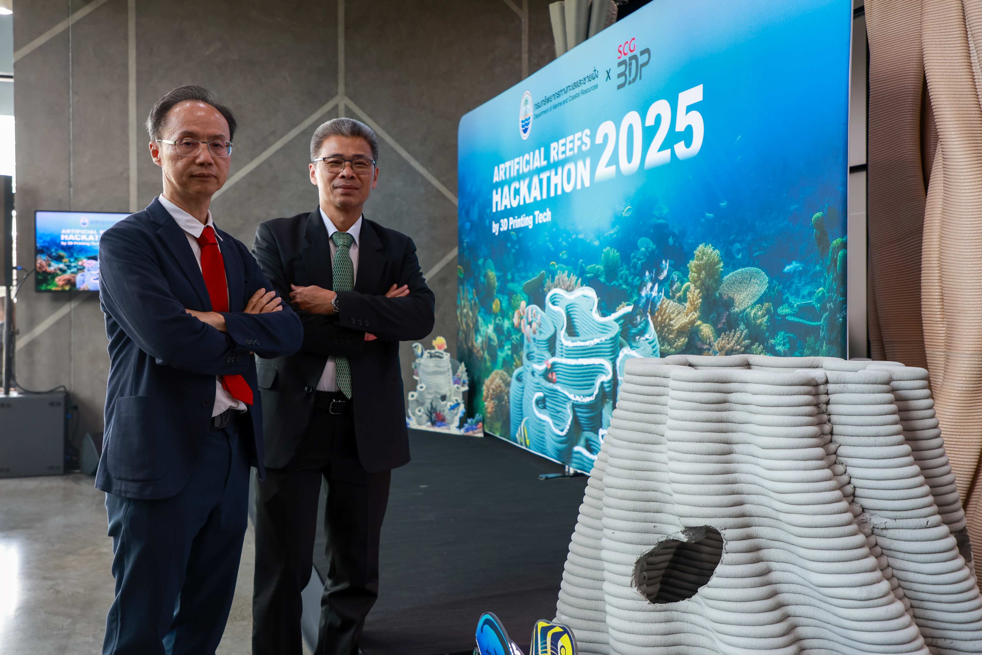 "ผลงานจากโครงการ ARTIFICIAL REEFS HACKATHON 2025 แสดงให้เห็นถึงเทคโนโลยี 3D Printing ของ SCG สามารถนำมาผนวกกับองค์ความรู้ด้านวิทยาศาสตร์ทางทะเล ที่มีส่วนร่วมอนุรักษ์และฟื้นฟูทรัพยากรทางทะเลกับทาง ทช. ได้เป็นอย่างดี อันจะทำให้แผนงานการพัฒนาวัสดุฐานลงเกาะตัวอ่อนปะการัง ดำเนินการได้อย่างมีประสิทธิภาพ รวดเร็ว แม่นยำมากขึ้น อีกทั้งไม่ก่อให้เกิดมลภาวะในระยะยาว แสดงให้เห็นความเหมาะสมของเทคโนโลยี 3D Printing ของ SCG ในวันนี้ ที่จะเข้ามาช่วย ‘ฟื้นฟู’ ทรัพยากรทางทะเลและชายฝั่งของประเทศ อันสอดคล้องกับแนวทางการดำเนินธุรกิจของ SCG – Inclusive Green Growth"