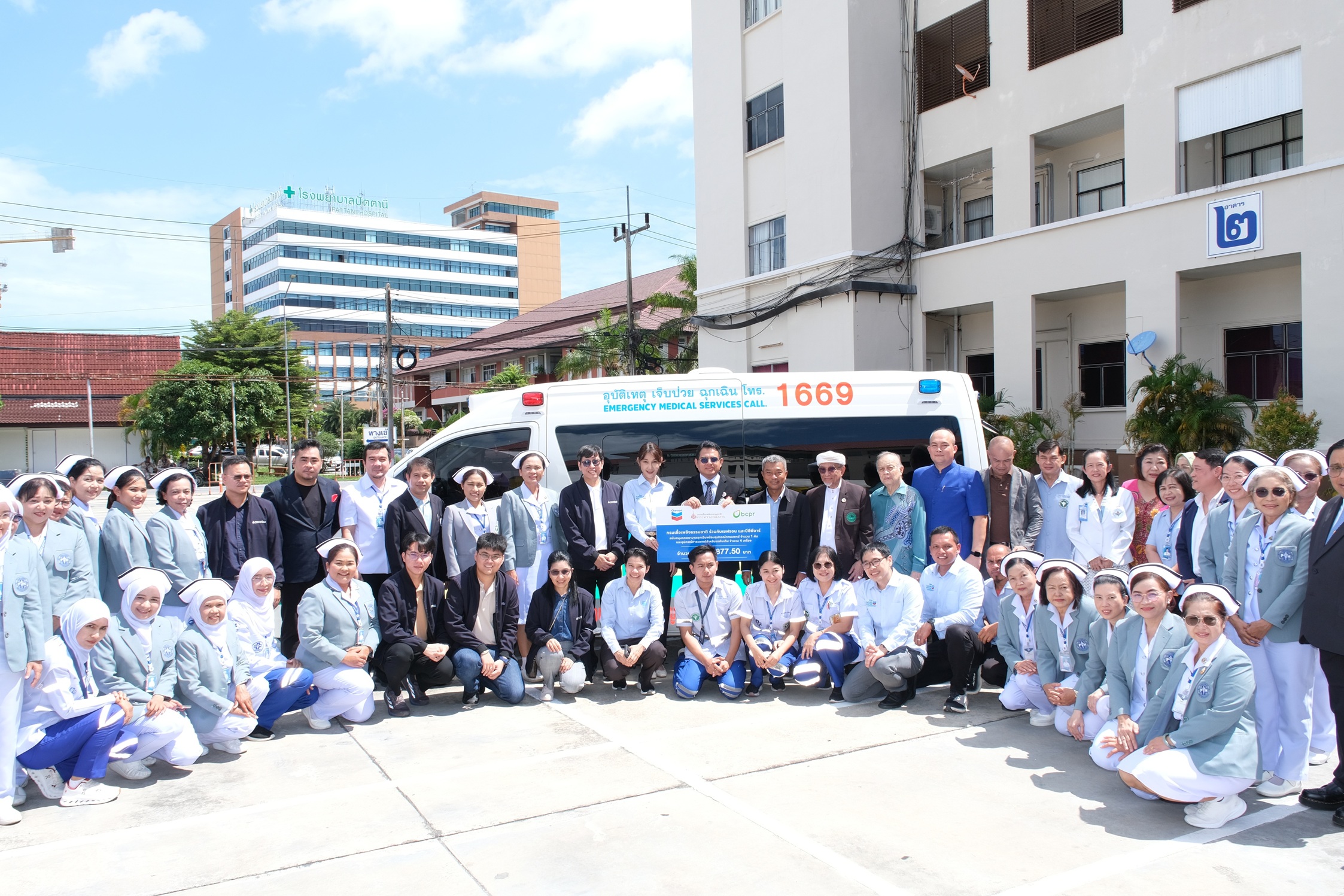 เมื่อเร็วๆ นี้ กรมเชื้อเพลิงธรรมชาติ กระทรวงพลังงาน ร่วมกับ บริษัท เชฟรอน ออฟชอร์ (ประเทศไทย) จำกัด และ บริษัท บีซีพีอาร์ จำกัด (BCPR) ในกลุ่มบริษัทบางจาก ซึ่งเป็นผู้ดำเนินงานและผู้ร่วมประกอบกิจการปิโตรเลียมของ แปลงสำรวจปิโตรเลียมในทะเลอ่าวไทยหมายเลข G2/65 มอบรถพยาบาลเคลื่อนที่พร้อมติดตั้งอุปกรณ์ช่วยชีวิตฉุกเฉิน จำนวน 1 คัน และอุปกรณ์การแพทย์ จำนวน 4 เครื่อง เพื่อปรับปรุงอุปกรณ์ในรถพยาบาลที่มีอยู่เดิม รวมมูลค่ากว่า 3.6 ล้านบาท ให้กับโรงพยาบาลปัตตานี โดยได้รับเกียรติจาก นางพาตีเมาะ สะดียามู ผู้ว่าราชการจังหวัดปัตตานี เป็นประธานในพิธี การมอบรถพยาบาลฉุกเฉินในครั้งนี้ มีวัตถุประสงค์เพื่อเสริมศักยภาพการปฏิบัติงานช่วยชีวิตผู้ป่วยเมื่อมีเหตุฉุกเฉินได้อย่างมีประสิทธิภาพ ช่วยให้ผู้ป่วยสามารถเข้ารับบริการทางการแพทย์ได้อย่างรวดเร็วและทั่วถึงมากขึ้น