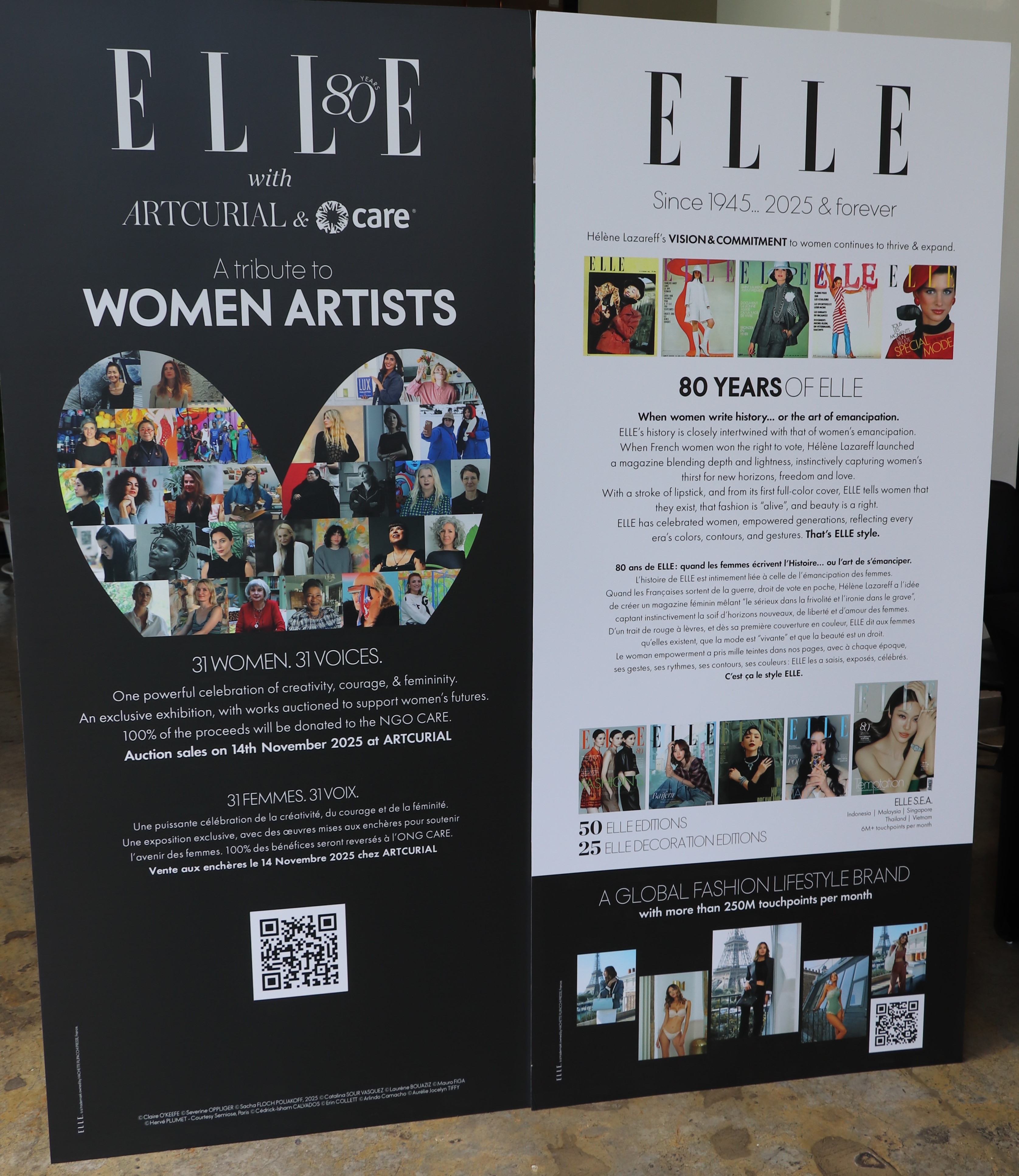 พร้อมกันนี้ ศิลปินทุกท่านได้มอบผลงานทั้งหมด เข้าร่วมการประมูล กับ Artcurial (อาร์-คู-รี-ยาล)ซึ่งเป็นบริษัทประมูลงานศิลปะชั้นนำของฝรั่งเศสโดยการประมูลจะเกิดขึ้นหลังจบการแสดงนิทรรศการที่กรุงปารีส มอบรายได้ทั้งหมดให้ CARE Organization เพื่อสนับสนุนและช่วยเหลือผู้หญิงทั่วโลก