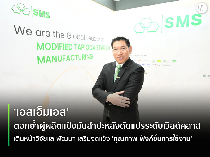 บริษัท เอสเอ็มเอส คอร์ปอเรชั่น จำกัด ภายใต้กลุ่มบริษัท เอส เอ็ม เอส ผู้ผลิตและส่งออกแป้งมันสำปะหลังดัดแปรชั้นนำ หนึ่งในธุรกิจการเกษตรของ "กลุ่มพูลผล" ตอกย้ำผู้นำการผลิตแป้งมันสำปะหลังดัดแปรของประเทศไทยและระดับโลก ชูกลยุทธ์ “คุณภาพ-ฟังก์ชันการใช้งาน” ที่ตอบโจทย์ เดินหน้าวิจัยและพัฒนาผลิตภัณฑ์ ยกระดับคุณภาพในผลิตภัณฑ์อาหาร ตอบโจทย์เทรนด์สุขภาพทั่วโลก
