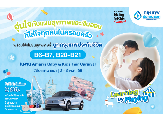 กลับมาอีกครั้งกับงานดีๆ สำหรับคุณพ่อคุณแม่ ที่ กรุงเทพประกันชีวิต ร่วมขนทัพผลิตภัณฑ์ในการวางแผนอนาคตเพื่อลูกน้อย มาออกบูทในงาน “Amarin Baby & Kids Fair Carnival 2025” ภายใต้แนวคิด Learning by Playing ใส่ใจลูกน้อย เสริมสร้างประสบการณ์เรียนรู้ พร้อมวางแผนเพื่อเป้าหมายในอนาคต มอบความ “อุ่นใจ” กับแผนสุขภาพและเงินออม ที่ “ใส่ใจ” ทุกคนในครอบครัว พร้อมแบบประกันที่รองรับความต้องการ ตอบโจทย์ทุกเป้าหมายในอนาคตเพื่อลูก ที่มอบทั้งความคุ้มครองด้านสุขภาพ ค่ารักษาพยาบาล และการออมเงินเพื่อเป็นทุนการศึกษาให้ลูกรัก