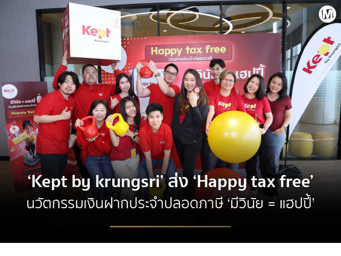 Kept by krungsri นวัตกรรมบริหารเงินที่ทำให้การออมเงินเป็นเรื่องง่าย สนุกและสำเร็จได้จริง ประกาศเปิดตัวอินโนเวชันใหม่ล่าสุด กระปุก “Happy tax free” เงินฝากประจำปลอดภาษีในแอป Kept เปลี่ยนวินัยที่เคยเป็นเรื่องยากให้กลายเป็นสมการ “มีวินัย = แฮปปี้” ด้วยการออกแบบการใช้งานที่ทำให้การออมเงินเป็นเรื่องง่าย เห็นเป้าหมายปลายทางชัดเจน มีความสำเร็จเล็กๆ ระหว่างทาง ผู้เริ่มต้นออมก็สามารถใช้งานและบรรลุเป้าหมายได้ เพื่อช่วยให้คนรุ่นใหม่มีวินัยในการออมเงินสำหรับเป้าหมายในอนาคต ให้ทุกคนมีความสุขในการเก็บเงิน ควบคู่ไปกับการใช้ชีวิตตามไลฟ์สไตล์ที่ชอบ ภายใต้แนวคิดว่า “การเปลี่ยนแปลงเล็กๆ สร้างสิ่งยิ่งใหญ่เสมอ ปรับนิดชีวิตเปลี่ยน” พร้อมเปิดตัว แคมเปญสื่อสาร “มีวินัย = แฮปปี้” ภาพยนตร์โฆษณาชุดใหม่ที่ชวนคนรุ่นใหม่เริ่มก้าวแรกของการออมอย่างมีวินัยไปด้วยกัน