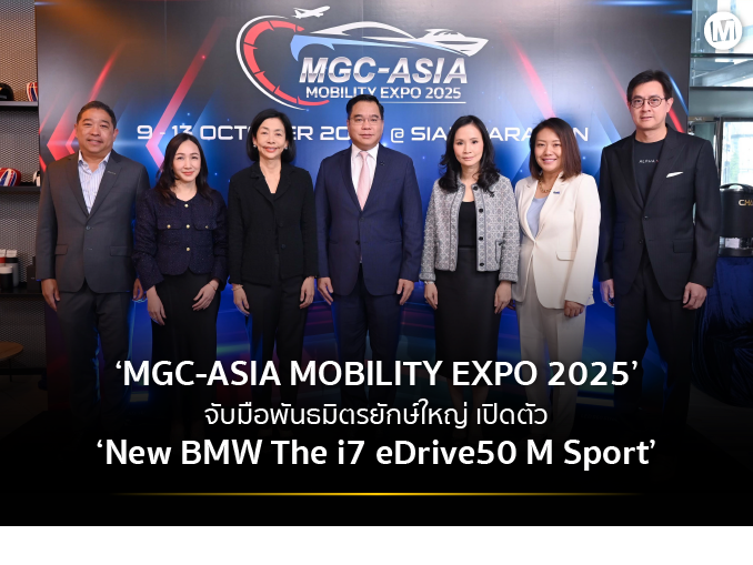 ‘MGC-ASIA MOBILITY EXPO 2025’ จับมือพันธมิตรยักษ์ใหญ่ ภายใต้คอนเซปต์ ‘The Ultimate Deals of the Year’ เปิดตัว ‘New BMW The i7 eDrive50 M Sport’ ครั้งแรกในไทย พร้อมจัดแสดงยนตรกรรมในเครือ และแบรนด์พาร์ทเนอร์ครบทุกกลุ่ม พร้อมข้อเสนอที่คุ้มค่า 9-13 ตุลาคมนี้ ณ ศูนย์การค้าสยามพารากอน