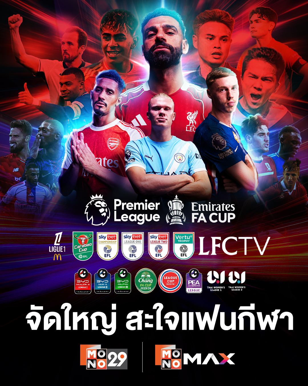 MONO29 เดินหน้าสร้างปรากฏการณ์ครั้งใหม่ในวงการสื่อไทย ประกาศปรับผังรายการครั้งใหญ่ในเดือนพฤศจิกายนนี้ เพิ่มสัดส่วนคอนเทนต์กีฬา (Sport Content) จาก 4% เป็น 38% พร้อมดึงลิขสิทธิ์ถ่ายทอดสดลีกฟุตบอลชั้นนำระดับโลก ขณะเดียวกัน Monomax ขึ้นแท่นแพลตฟอร์มหลักของแฟนกีฬาด้วยการถ่ายทอดสดพรีเมียร์ลีกครบ 380 แมตช์ และ FA Cup ทุกเกม ต่อยอดด้วยคอนเทนต์ด้านสุขภาพและไลฟ์สไตล์ เพื่อตอบโจทย์คนรุ่นใหม่ที่รักกีฬาและใส่ใจสุขภาพ