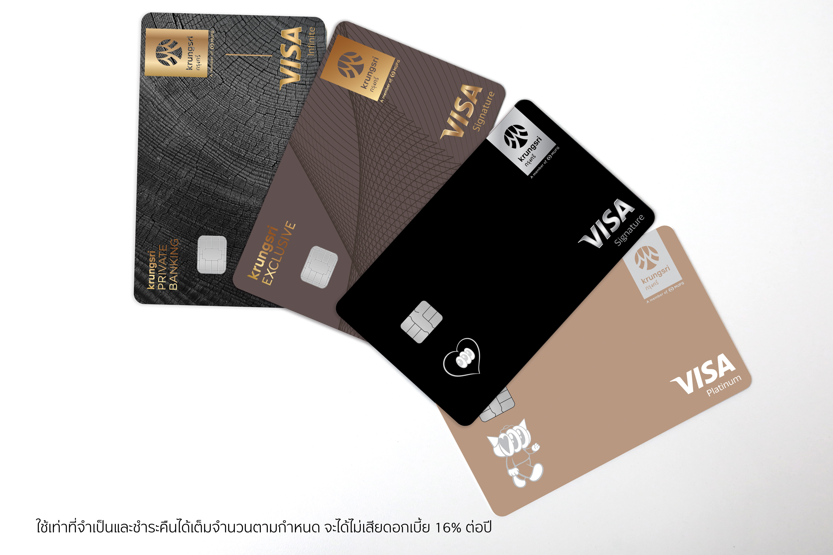 สิทธิประโยชน์ภายใต้แนวคิด Life Worth Living ถูกออกแบบให้ครอบคลุมลูกค้าทุกกลุ่มด้วยบัตรหลัก 4 แบบ ตั้งแต่กลุ่มลูกค้ามั่งคั่ง (Private Banking, Exclusive Signature) ไปจนถึงกลุ่มรายได้สูงและแมส (Signature, Platinum) โดยเพิ่มสิทธิพิเศษ เช่น