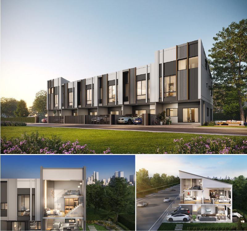 3 จุดเด่นของ MIRTH LOFT ทาวน์โฮมโมเดลใหม่ล่าสุด 2.5 ชั้น หน้ากว้าง 5.5 เมตร ขนาดที่ดินเริ่ม 20 ตร.วา พื้นที่ใช้สอย 140 ตร.ม. 3 ห้องนอน 3 ห้องน้ำ 2 ที่จอดรถ กับ ‘ที่สุดของ Living Quality ในแบบคุณ’