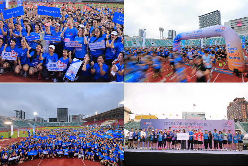 ธนาคารยูโอบี ประเทศไทย จัดงานวิ่งระดมทุนประจำปี 2025 UOB Heartbeat Run ครบรอบ 15 ปี เมื่อวันอาทิตย์ที่ผ่านมา ณ สนามศุภชลาศัย โดยมีเพื่อนพนักงาน ครอบครัว ลูกค้า และพันธมิตรธุรกิจกว่า 2,500 คน ร่วมวิ่งเพื่อสุขภาวะที่ดีและการให้คืนสู่สังคม