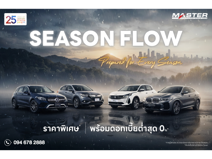 มาสเตอร์ เซอร์ทิฟายด์ ยูสคาร์ ศูนย์รวมรถยนต์มือสองครบวงจร ภายใต้บริษัท มิลเลนเนียม กรุ๊ป คอร์ปอเรชั่น (เอเชีย) จำกัด (มหาชน) พร้อมด้วย BMW Certified Used Car by Millennium Auto, Benz Certified Used Car, และ Summit Honda Certified Used Car คัดสรรยนตรกรรมมือสองระดับพรีเมียม พร้อมกันทั้ง 10 โชว์รูม รวมกว่า 300 คัน มอบความมั่นใจทุกการเดินทาง ภายใต้แคมเปญ ‘SEASON FLOW’ ตลอดเดือนตุลาคม 2568