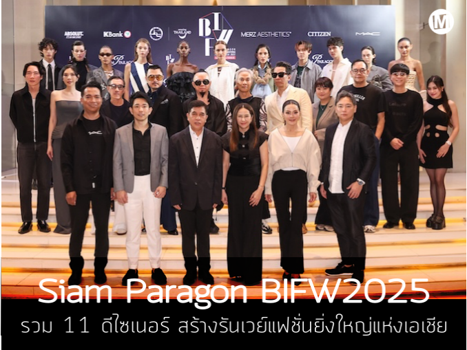 Siam Paragon Bangkok International Fashion Week 2025 (BIFW2025) เวทีแฟชั่นอันดับหนึ่งของประเทศและงานแฟชั่นยิ่งใหญ่ระดับเอเชีย จัดขึ้นด้วยความร่วมมือจากพันธมิตรทั้งภาครัฐและเอกชน โดย สยามพารากอน ร่วมกับ การท่องเที่ยวแห่งประเทศไทย (TAT), เมิร์ซ เอสเธติกส์ ประเทศไทย (Merz Aesthetics), ธนาคารกสิกรไทย, ซิติเซน (CITIZEN), แมค คอสเมติกส์ ไทยแลนด์ (M.A.C Cosmetics) และ แอปโซลูท (ABSOLUTE) เป็นเวทีที่ถ่ายทอดความเป็นเลิศของแฟชั่นไทยสู่สากล พร้อมมอบแรงบันดาลใจให้ทุกคนได้สัมผัส และตอกย้ำบทบาทความเป็น “World Class Fashion Destination” ของสยามพารากอน ก่อนที่ม่านของรันเวย์จะเปิดโชว์สุดยิ่งใหญ่ เหล่าดีไซเนอร์ทั้ง 11 แบรนด์ ได้เผยเบื้องหลังแรงบันดาลใจของคอลเลกชั่นในฤดูกาลใหม่ อันเปี่ยมด้วยความสร้างสรรค์และโชว์ที่สะท้อนเอกลักษณ์เฉพาะตัวของแต่ละแบรนด์ ภายใต้แนวคิด “FASHIONABLY EXTRAORDINARY” พร้อมมอบประสบการณ์สุดพิเศษ ถ่ายทอดเรื่องราวอันทรงพลัง และแรงขับเคลื่อนให้วงการแฟชั่นไทยออกสู่สายตาเวทีโลกได้อย่างหลากมิติ อาทิ