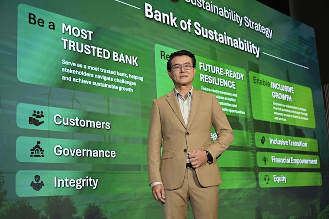 นอกจากนี้ ธนาคารเชื่อมั่นว่าการขับเคลื่อนธุรกิจไทยสู่เศรษฐกิจคาร์บอนต่ำต้องอาศัยความร่วมมือจากทุกภาคส่วน จึงร่วมกับพันธมิตรจากภาคเอกชน ภาครัฐ ภาคการเงิน และภาควิชาการ จัดตั้ง “เครือข่ายธุรกิจเพื่อการจัดการสภาพภูมิอากาศประเทศไทย” (Thailand Climate Business Network: Thai CBN) ซึ่งมีสมาชิกกว่า 34 องค์กร ร่วมกันผลักดันแนวปฏิบัติด้าน Climate ที่นำไปใช้ได้จริง ตั้งแต่ระดับ SME จนถึงข้อเสนอเชิงนโยบายระดับประเทศ โดยเครือข่าย Thai CBN ได้จัดทำ E-Handbook for Greener SMEs และ White Paper - Climate Ecosystem Collaboration เพื่อส่งมอบให้ภาครัฐ ถือเป็นจุดเริ่มต้นของการสร้างพลังร่วมระหว่างภาคธุรกิจและภาครัฐในการเร่งการเปลี่ยนผ่านของประเทศอย่างยั่งยืนและมีส่วนร่วม