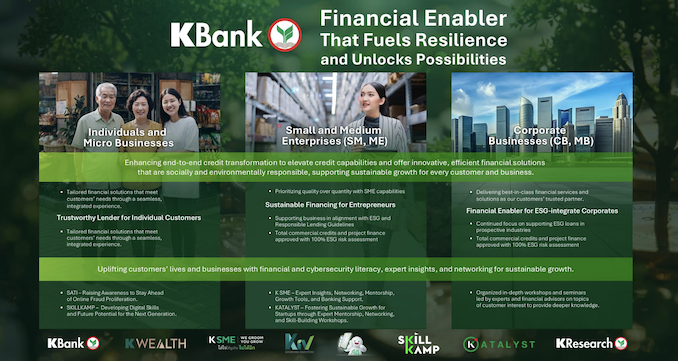 ธนาคารไม่ได้เป็นเพียงผู้ให้สินเชื่อหรือบริการทางการเงิน แต่ยังเป็นผู้เสริมสร้างศักยภาพเพื่อให้ลูกค้า ธุรกิจ และสังคมมีความยืดหยุ่นและแข็งแกร่ง ด้วยการส่งมอบโซลูชันทางการเงินที่ครอบคลุม ควบคู่กับการให้องค์ความรู้และเครื่องมือที่จำเป็นต่อการเติบโตอย่างยั่งยืน