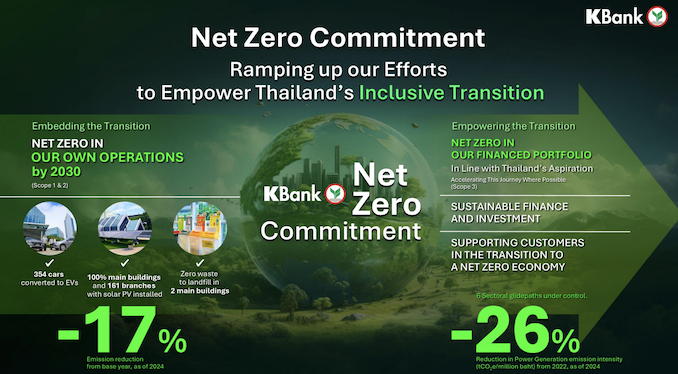 ธนาคารกสิกรไทย ได้ประกาศเจตนารมณ์สู่ Net Zero มาตั้งแต่ปี 2564 และตั้งเป้าหมายที่จะเป็น "The Most Comprehensive Climate Solution Provider – ผู้ให้บริการโซลูชันด้านสภาพภูมิอากาศที่ครอบคลุมที่สุด” ก้าวไป “เหนือกว่าการให้การสนับสนุนทางการเงิน” (Moving beyond finance) เพื่อช่วยสร้างขีดความสามารถในการแข่งขันที่จำเป็นให้กับลูกค้า