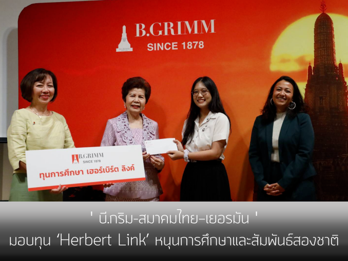 คุณหญิงทิพาวดี เมฆสวรรค์ ที่ปรึกษากิตติมศักดิ์ บริษัท บี.กริม เพาเวอร์ จำกัด (มหาชน) เป็นผู้แทนในการแจกรางวัลทุน “Herbert Link” ให้แก่นิสิต นักศึกษารวม 18 คน จาก 9 มหาวิทยาลัย ประจำปี 2568 ร่วมด้วย ศาสตราจารย์กิตติคุณ ดร.พรสรรค์ ถมังรักษ์สัตว์ นายกสมาคมไทย-เยอรมัน ผู้จัดงาน ดร.ไพบูลย์ ช่วงทอง ผู้แทนจากคณะกรรมการบริหาร มูลนิธิวัฒนธรรมไทย-เยอรมัน และคุณ Sweta Madhuri Kannan ผู้ช่วยทูตฝ่ายวัฒนธรรมและสื่อมวลชน สถานเอกอัครราชทูตเยอรมนี ร่วมเป็นเกียรติในงาน