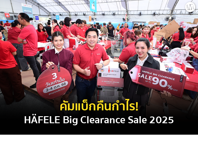 งาน HÄFELE Big Clearance Sale 2025 พบดีลเปิดแรงตั้งแต่วินาทีแรก ลดสูงสุด 90% ปีละครั้งเท่านั้น! กับสินค้าคุณภาพจากประเทศเยอรมนี ไอเทมเรื่องบ้านและอาคารที่มีให้เลือกหลากหลายในราคาพิเศษที่สุดแห่งปี ตอบโจทย์ทั้งคนอยากปรับปรุงบ้านทั้งหลังหรือแต่งเติมของเฉพาะจุดก็เลือกได้ตามใจในราคาที่ใช่ งานเดียวจบทุกมุมบ้าน ในสตูดิโอไลฟ์สไตล์ ครบครัน ของเยอะ มีให้เลือกทั้ง ฮาร์ดแวร์และเฟอร์นิเจอร์ฟิตติ้งแน่น ๆ, อุปกรณ์ครัวที่ครบเครื่องตั้งแต่ เตาแก๊ส เตาไฟฟ้า เตาอบ เครื่องดูดควัน หม้อทอดไร้น้ำมัน, หรือฝั่งห้องน้ำที่จัดเต็มทั้ง สุขภัณฑ์ ฝักบัว ก๊อกน้ำ ฟังก์ชันเพื่อสุขอนามัย, กลุ่มสมาร์ทเทคโนโลยีอย่าง Digital Door Lock รวมถึงของใช้จำเป็นอย่างลูกบิด มือจับ เครื่องมือช่าง อุปกรณ์ DIY ไปจนถึงนวัตกรรมแสงสว่าง Lighting Solutions ที่ช่วยเติมเต็มความสุขคอมพลีตในทุกมุมบ้าน
