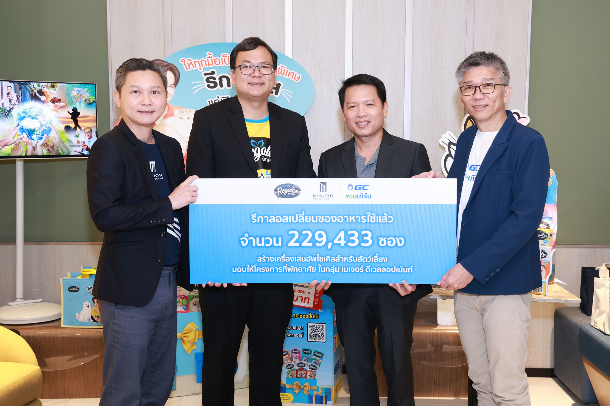 Regalos – รีกาลอส แบรนด์อาหารสัตว์เลี้ยงคุณภาพเกรดพรีเมียมในกลุ่มบริษัทพัทยาฟู้ด (PFG - Pataya Food Group) ผู้ผลิตเดียวกับแบรนด์ นอติลุส เดินหน้าฉลองครบรอบ 7 ปี ด้วยการสานต่อพันธกิจด้านความยั่งยืนเปิดตัวโครงการ “Waste for Life – รีกาลอส เปลี่ยนซองอาหารใช้แล้วสร้างของเล่นให้น้องๆ” โดยร่วมมือกับพันธมิตรหลัก บริษัท เมเจอร์ ดีเวลลอปเม้นท์ จำกัด (มหาชน) และ บริษัท พีทีที โกลบอล เคมิคอล จำกัด (มหาชน) หรือ GC ผ่าน “GC YOUเทิร์น แพลตฟอร์ม” ระบบการจัดการพลาสติกแบบครบวงจร