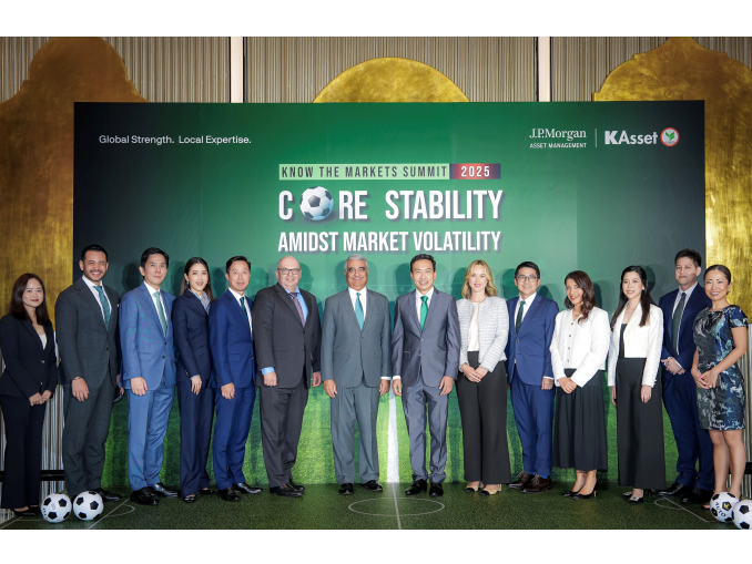 บริษัทหลักทรัพย์จัดการกองทุน กสิกรไทย จำกัด (บลจ.กสิกรไทย) ร่วมกับพันธมิตรระดับโลก J.P. Morgan Asset Management จัดงานสัมมนาการลงทุนสุดยิ่งใหญ่แห่งปี “Know The Markets Summit 2025: Core Stability Amidst Market Volatility” โดยได้รับเกียรติจาก Mr. Ayaz Ebrahim CEO for Singapore and Southeast Asia, J.P. Morgan Asset Management (ที่ 7 จากซ้าย) และนายวิน พรหมแพทย์, CFA ประธานกรรมการบริหาร บลจ.กสิกรไทย (ที่ 7 จากขวา) นำทีมผู้เชี่ยวชาญด้านการลงทุนจากทั้ง 2 บริษัท มาร่วมถ่ายทอดมุมมองเศรษฐกิจและกลยุทธ์การลงทุนสำหรับปี 2026 เพื่อเสริมสร้างความมั่นใจให้กับผู้ลงทุนไทยในการเตรียมรับมือกับความไม่แน่นอนของเศรษฐกิจโลก