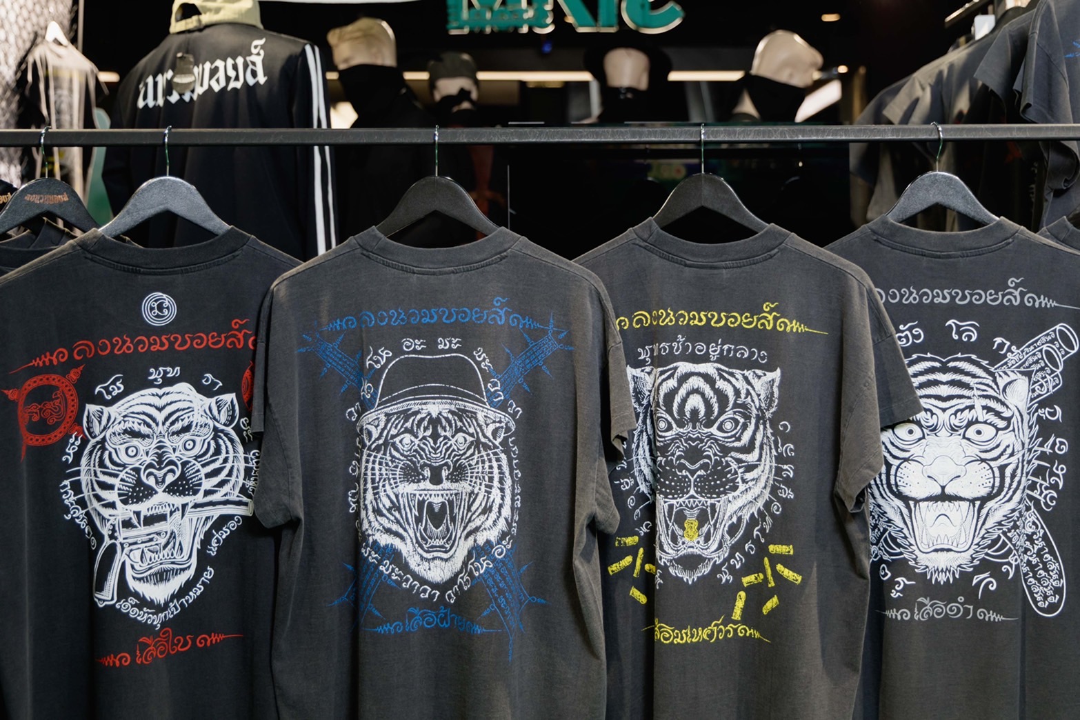 ครั้งนี้มาร่วมคอลแลปส์กับภาพยนตร์ ‘เสือ (4Tigers)’ โดย สหมงคลฟิล์ม นับเป็นการผสานพลังเชื่อมโลกสตรีทแฟชั่นเข้ากับพลังศรัทธาแบบไทย 4 ยันต์ 4 อาคม ถ่ายทอดผ่านเส้นศิลปะบนเสื้อผ้า โดยแต่ละแบบสะท้อนเอกลักษณ์และพลังแห่งความเป็นตัวตนในแบบฉบับไทยออริจินอล ของทั้ง “4 เสือ” ได้อย่างชัดเจน