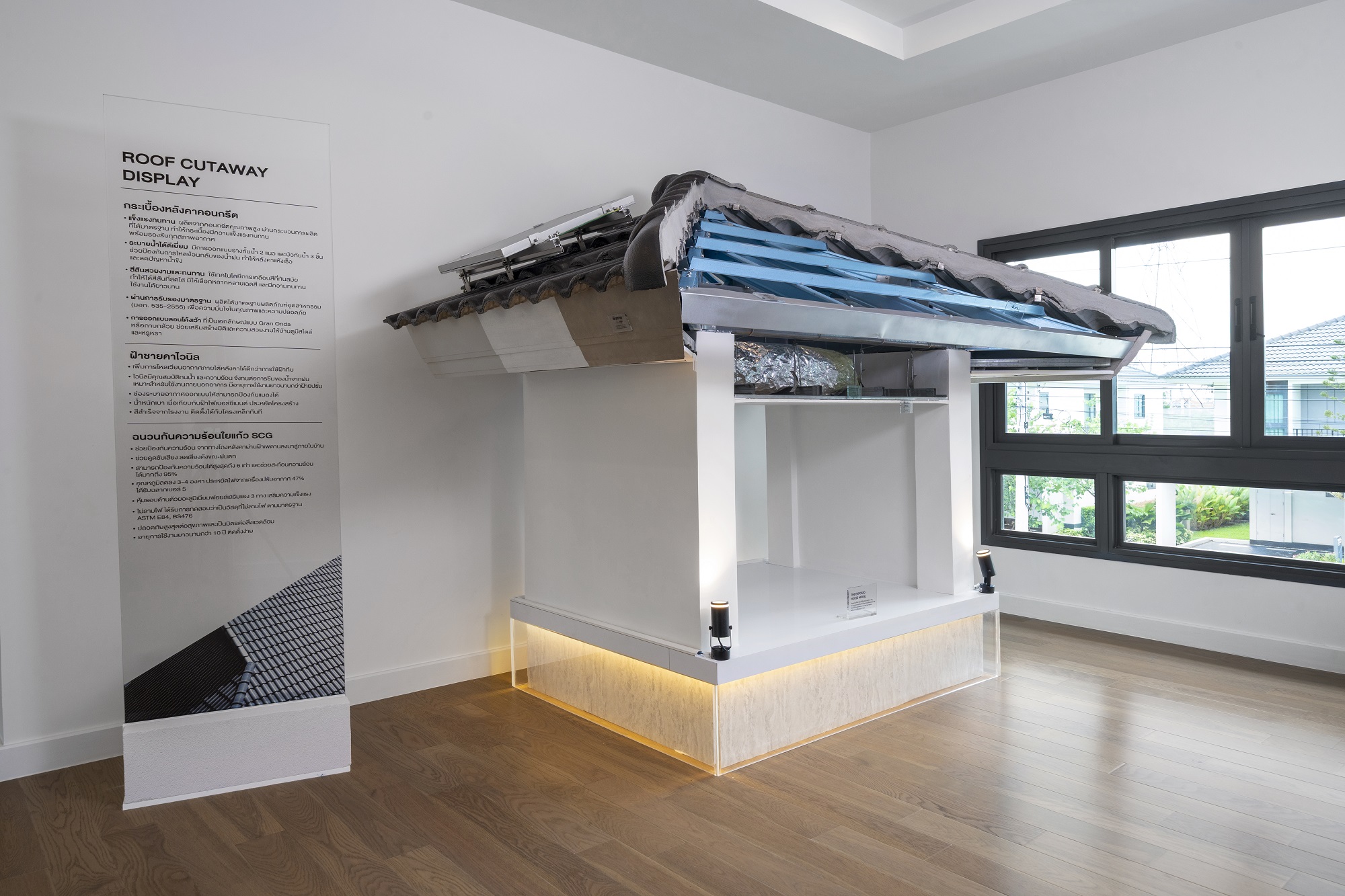 หลังคามาตรฐานสูง – ชมโครงสร้างหลังคาที่ปกติลูกค้าไม่สามารถมองเห็นได้ โดยเลือกใช้ โครงเหล็กชุบกัลป์วาไนซ์* พร้อมกระเบื้องคอนกรีต เชิงชายเสริมป้องกันน้ำฝนซึม ฉนวนกันความร้อน และฝ้าชายคา ไวนิลที่ช่วยระบายอากาศ ลดอุณหภูมิภายในบ้านได้ถึง 7 องศาเซลเซียส* ช่วยให้บ้านเย็นและหลังคามีอายุการใช้งานที่ยาวนาน อีกทั้งยังออกแบบให้รองรับการติดตั้ง Solar Roof ที่จะทำให้การผลิตพลังงานแสงอาทิตย์มีประสิทธิภาพสูงสุด พร้อมหน้าจอแสดงผล Tracking แบบ Real time ที่ให้ผู้อยู่อาศัยตรวจสอบการผลิตและการใช้ไฟฟ้าได้ทันที