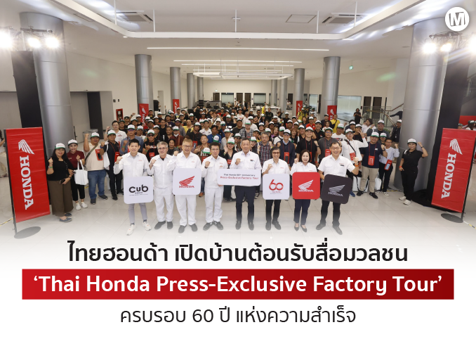 บริษัท ไทยฮอนด้า จำกัด ผู้ผลิตและจัดจำหน่ายรถจักรยานยนต์และเครื่องยนต์อเนกประสงค์ฮอนด้าในประเทศไทย สร้างประสบการณ์สุดพิเศษแก่สื่อมวลชน ด้วยการจัดงาน “Thai Honda Press-Exclusive Factory Tour” เปิดบ้านพาชมกระบวนการผลิต ณ นิคมอุตสาหกรรมลาดกระบัง นับเป็นครั้งแรกในรอบกว่าทศวรรษที่โรงงานไทยฮอนด้าได้เปิดประตูต้อนรับสื่อ เพื่อสะท้อนเส้นทางกว่า 60 ปีแห่งความสำเร็จ พร้อมประกาศวิสัยทัศน์สู่อนาคตที่ยั่งยืน