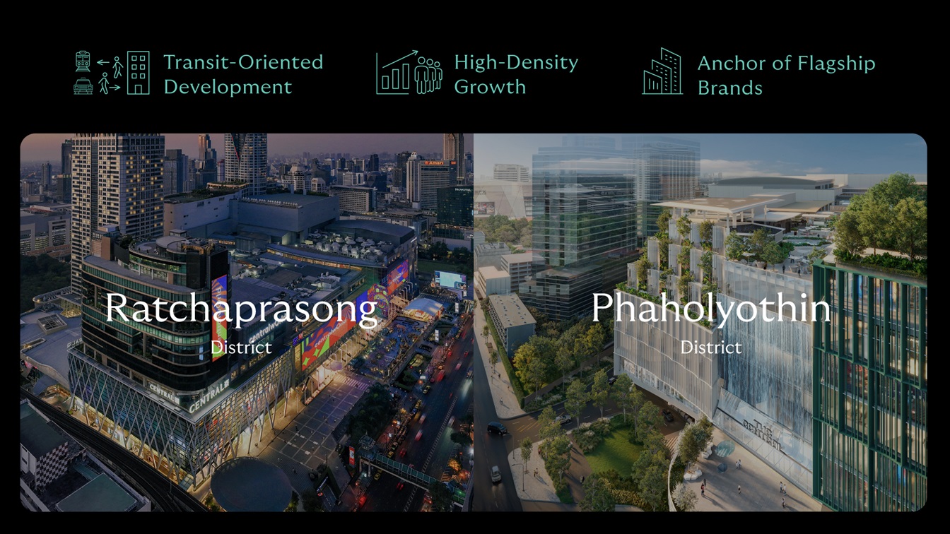 “The Central พหลโยธิน มีศักยภาพที่โดดเด่น รองรับการเปิดแฟล็กชิพของแบรนด์ทั้งไทยและระดับโลก เพื่อให้แบรนด์ได้แสดงศักยภาพได้อย่างเต็มที่ ด้วยการออกแบบโครงการแบบ Flagship-Reimagined Destination สร้างมาตรฐานใหม่ของรีเทลให้กรุงเทพฯ ตอนเหนือ ทั้งนี้พหลโยธินกำลังเติบโตอย่างก้าวกระโดด ยกระดับสู่การเป็น Commercial & Business District ดังนี้