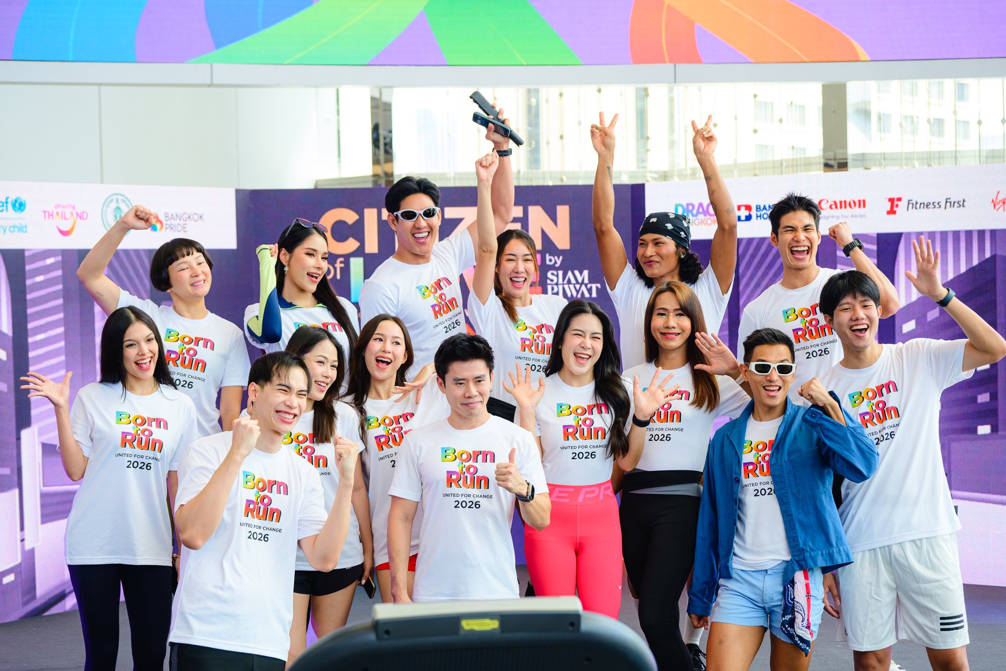 งานแถลงข่าวกิจกรรมวิ่งการกุศล “Citizen of Love : Born to Run 2026 United for Change”ได้รับเกียรติจากพันธมิตร อาชวันต์ กงกะนันทน์ รองผู้อำนวยการภูมิภาคภาคกลาง การท่องเที่ยวแห่งประเทศไทย พร้อมด้วย ธณพร ตันติยานนท์ กรรมการผู้จัดการ กลุ่มธุรกิจศูนย์การค้า ONESIAM วาดดาว-อรรณว์ ชุมาพร ประธานและผู้ก่อตั้ง บริษัท นฤมิตไพรด์ จำกัด ผู้จัดงาน Bangkok Pride Festival และภัทร เลิศสุกิตติพงศา กรรมการ บจก.เยลโล่ แชนแนล ผู้จัดงาน Drag Bangkok Festival ร่วมกล่าวถึงรายละเอียดในการจัดงาน พร้อมด้วยผู้สนับสนุน อาทิ Fitness First Virgin Active Canon และโรงพยาบาลกรุงเทพ มาร่วมพูดคุยถึงความร่วมมือ และการให้การสนับสนุนของรางวัลให้แก่ผู้เข้าร่วมกิจกรรม