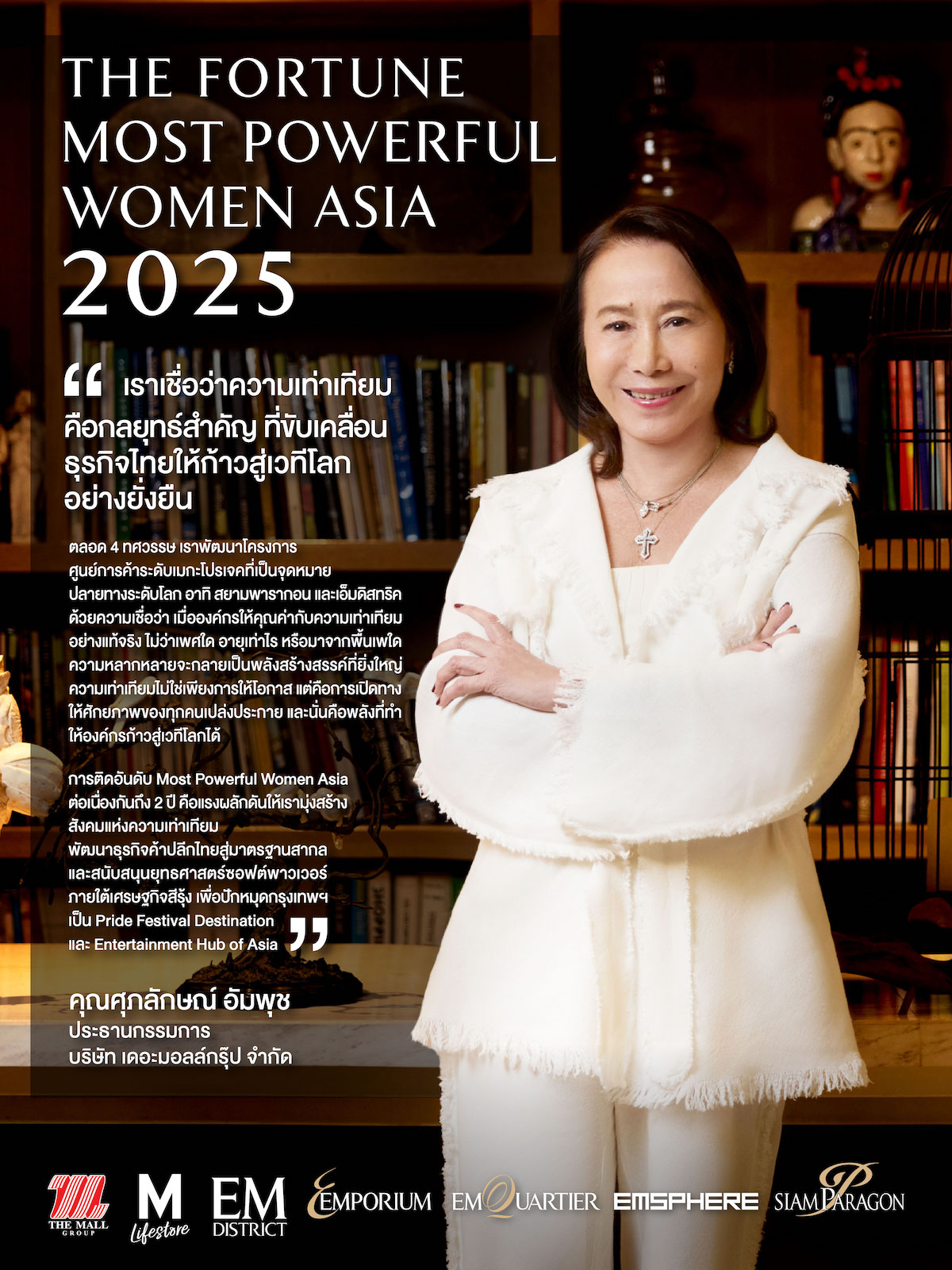 ศุภลักษณ์ อัมพุช ประธานกรรมการบริหาร กลุ่มเดอะมอลล์ กรุ๊ป จำกัด ได้รับการยกย่องให้ติดอันดับ “ผู้หญิงทรงอิทธิพลแห่งเอเชีย ประจำปี 2025” (Most Powerful Women Asia 2025) จากนิตยสาร Fortuneเป็นปีที่ 2 ติดต่อกัน สำหรับ การยกย่องผู้นำหญิง 100 คนที่มีบทบาทสำคัญในการใช้ความผันผวนทั้งในระดับภูมิภาคและระดับโลกเพื่อสร้างข้อได้เปรียบทางธุรกิจ ท่ามกลางผู้นำสตรี 100 คนจาก 14 ประเทศทั่วภูมิภาคเอเชีย-แปซิฟิก