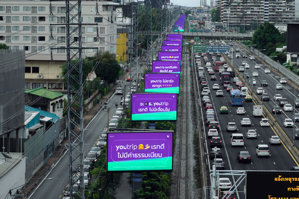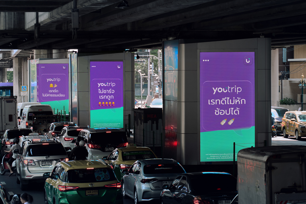 นอกจาก “ยึด BTS” แล้ว YouTrip ยังสร้างสีสันบนบิลบอร์ดทั่วกรุงด้วย “Emoji” ที่เหมือนจะบอกใบ้ให้คนทายความหมายเอง สะท้อนว่าการเดินทางไม่จำเป็นต้องถูกจำกัด อยู่ที่ว่าเรากล้าออกเดินทางแค่ไหน กิมมิคนี้สะท้อนภาพลักษณ์แบรนด์ที่สดใหม่ เข้าถึงง่าย มีเอกลักษณ์ และรับฟัง พร้อมยกระดับประสบการณ์นักเดินทางให้คุ้มค่าด้วยสิทธิประโยชน์มากมาย ทั้งส่วนลดโรงแรมและตั๋วเครื่องบินจาก Agoda และ Trip.com, ดีลพิเศษจาก Klook, สิทธิพิเศษสำหรับนักช้อป Don Quijote ที่ญี่ปุ่น ไปจนถึงแพ็กเกจประกันการเดินทางครอบคลุมที่สุด