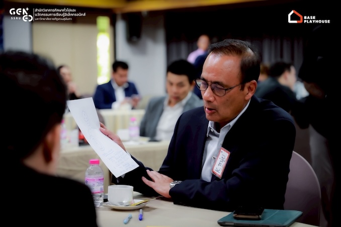 ผศ.ดร.มาธุสร แข็งขัน ผู้อำนวยการสำนักวิชาการศึกษาทั่วไปและนวัตกรรมการเรียนรู้อิเล็กทรอนิกส์ มหาวิทยาลัยราชภัฏสวนสุนันทา (Gen Ed SSRU) กล่าวเปิดงานกิจกรรมช่วงบ่าย สำหรับผู้บริหารมหาวิทยาลัยราชภัฎสวนสุนันทาว่า “มหาวิทยาลัยราชภัฏสวนสุนันทาให้ความสำคัญอย่างยิ่งต่อการพัฒนาคุณภาพผู้เรียนและการผลิตบัณฑิตที่ตอบโจทย์สังคมและตลาดแรงงาน ความร่วมมือกับ BASE Playhouse ในการใช้ SEEN Assessment จะช่วยให้เรามีข้อมูลศักยภาพเชิงประจักษ์ของนักศึกษาอย่างชัดเจน และสามารถวางแผนการเรียนการสอน การแนะแนว และการพัฒนาหลักสูตรได้อย่างเป็นระบบ มหาวิทยาลัยมุ่งมั่นที่จะใช้ข้อมูลเชิงประจักษ์เหล่านี้เพื่อสร้างนักศึกษาที่มีความพร้อมทั้งด้านความรู้ ทักษะ และคุณลักษณะสำหรับโลกการทำงานจริง”