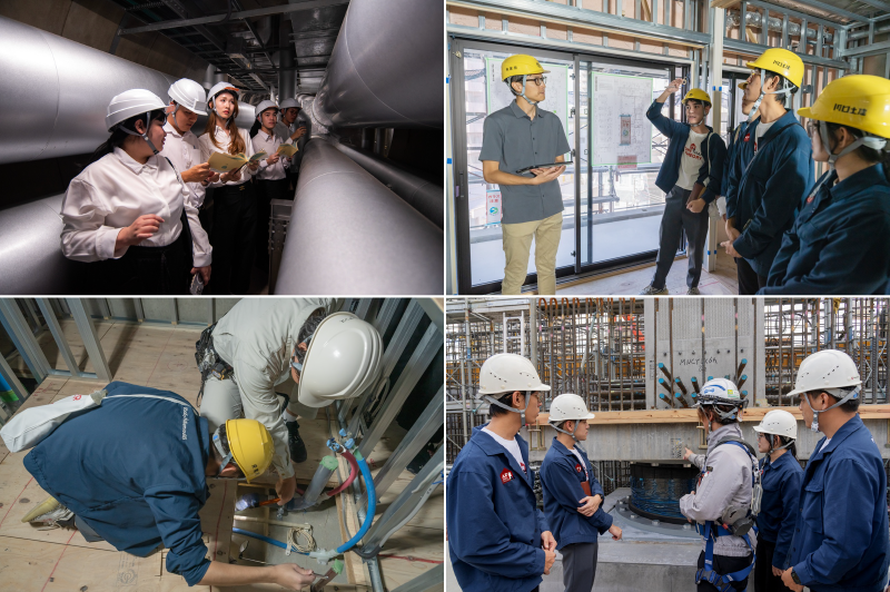 2. การก่อสร้างคอนโดมิเนียมที่ใช้ระบบ Seismic Isolation Structure (ระบบโครงสร้างแยกแผ่นดินไหว) ในขนาดที่ใหญ่และมากที่สุด ตัวแทนนิสิตนักศึกษาโครงการ AP OPEN HOUSE รุ่นที่ 10 ได้รับโอกาสพิเศษในการศึกษาเทคโนโลยีนี้อย่างใกล้ชิด ซึ่งช่วยดูดซับแรงสั่นไหวและลดความรุนแรงต่อผู้อยู่อาศัยในอาคารสูง การออกแบบดังกล่าวเป็นมากกว่านวัตกรรมด้านโครงสร้าง แต่เป็นการส่งมอบความสบายใจและความมั่นใจสูงสุด ให้แก่ผู้อยู่อาศัยในคอนโดมิเนียมอาคารสูงในประเทศญี่ปุ่น ซึ่งเป็นประเทศที่มีการบันทึกเหตุการณ์แผ่นดินไหวมากที่สุดแห่งหนึ่งของโลก การได้สัมผัสกับมาตรฐานความปลอดภัยระดับนี้ แม้ว่าบริบทด้านภัยพิบัติของไทยจะแตกต่างกัน แต่สะท้อนให้เห็นถึงความมุ่งมั่นของกลุ่มบริษัท มิตซูบิชิ เอสเตท ในการเป็นผู้นำด้านคุณภาพที่เริ่มต้นจากความปลอดภัยสูงสุด ซึ่งหลักคิดนี้ถูกนำไปประยุกต์ใช้กับการพัฒนาอสังหาฯในทุกพื้นที่ที่เข้าไปร่วมลงทุน โดยปรับให้เข้ากับบริบทที่แตกต่างกัน