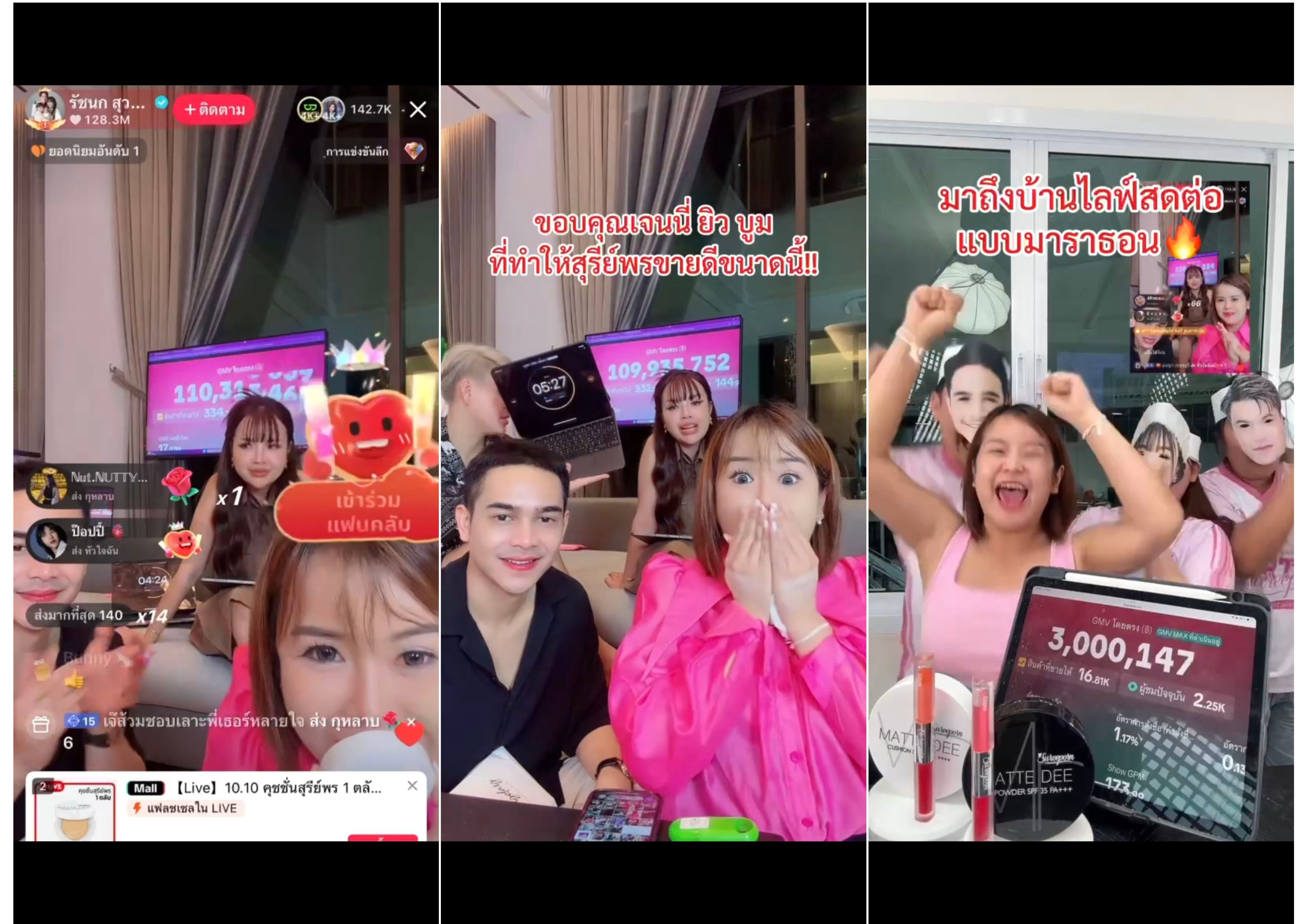 คุณณัฐธิดา สิงห์โท หรือ คุณอาย ซีอีโอแบรนด์เครื่องสำอาง Sureeporn Cosmetics และเจ้าของช่อง มินิอายตันจัง ที่มาพร้อมกับความตั้งใจที่อยากให้ผู้หญิงไทยทุกคนสวยได้กับสินค้าคุณภาพเทียบเท่าเคาน์เตอร์แบรนด์ในราคาที่จับต้องได้ เผยว่า "เราเป็นอีกหนึ่งแบรนด์ที่ได้ไลฟ์กับคุณเจนนี่ในเวลาตีหนึ่ง ซึ่งยอดผู้ชมอยู่ที่ 140,000 คน เป็น 10 นาทีที่มีค่ามากที่สุดในชีวิต เพราะทำให้เรารู้เลยว่าเวลาแต่ละนาทีที่ผ่านไปสำคัญแค่ไหน เราทำยอดได้ 15,000 ออเดอร์ใน 10 นาที แต่สิ่งที่มีค่ามากกว่านั้นคือ "ผู้ชมใหม่" ที่ไม่เคยรู้จักแบรนด์เรามาก่อน