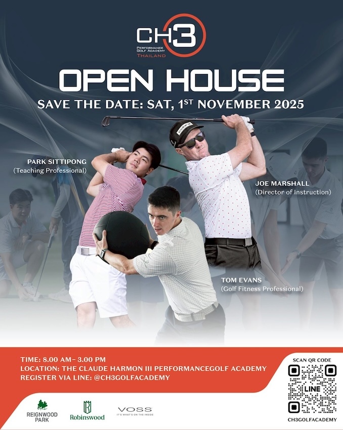 โดยล่าสุด CH3 Performance Golf Academy Thailand เตรียมเปิดบ้าน “CH3 Open House 2025” ฉลองเปิดตัวอย่างเป็นทางการในวันที่ 1 พฤศจิกายน นี้ โดยมุ่งยกระดับมาตรฐานการเรียนการสอนของไทยให้ทัดเทียมระดับโลก พร้อมเปิดโอกาสให้นักกอล์ฟเยาวชนและผู้ปกครองได้สัมผัสประสบการณ์จริงกับระบบการฝึกสอนของ CH3 ภายในงานมีกิจกรรมสุดพิเศษมากมาย อาทิ การแข่งขัน “The Robinswood Par 3 Challenge” เวิร์กช็อปกับโค้ชจาก CH3 และทีม Golf Fitness Professional ตลอดจนกิจกรรม Crazy Putting, Long Drive และ Lucky Draw พร้อมของรางวัลจาก CH3 เพื่อสร้างบรรยากาศแห่งความสนุกและแรงบันดาลใจให้ผู้ร่วมงาน
